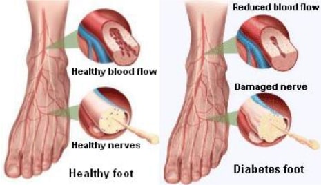 Kebas kaki atau tangan disebabkan gula berlebihan menyebabkan saluran darah menjadi keras dan sempit. Keadaan ini berlaku jika peredaran darah tidak lancar atau tidak boleh sampai ke hujung kaki dan tangan.